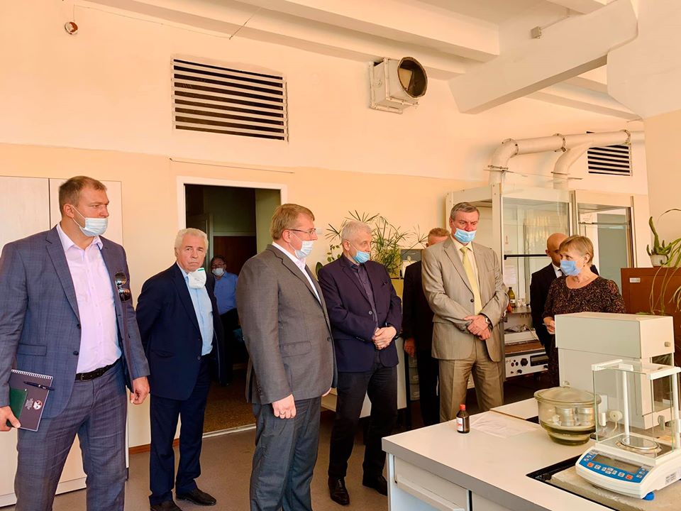 Олег Уруський і Роман Грищенко під час відвідання Державного науково-дослідного інституту хімічних продуктів у м. Шостка.