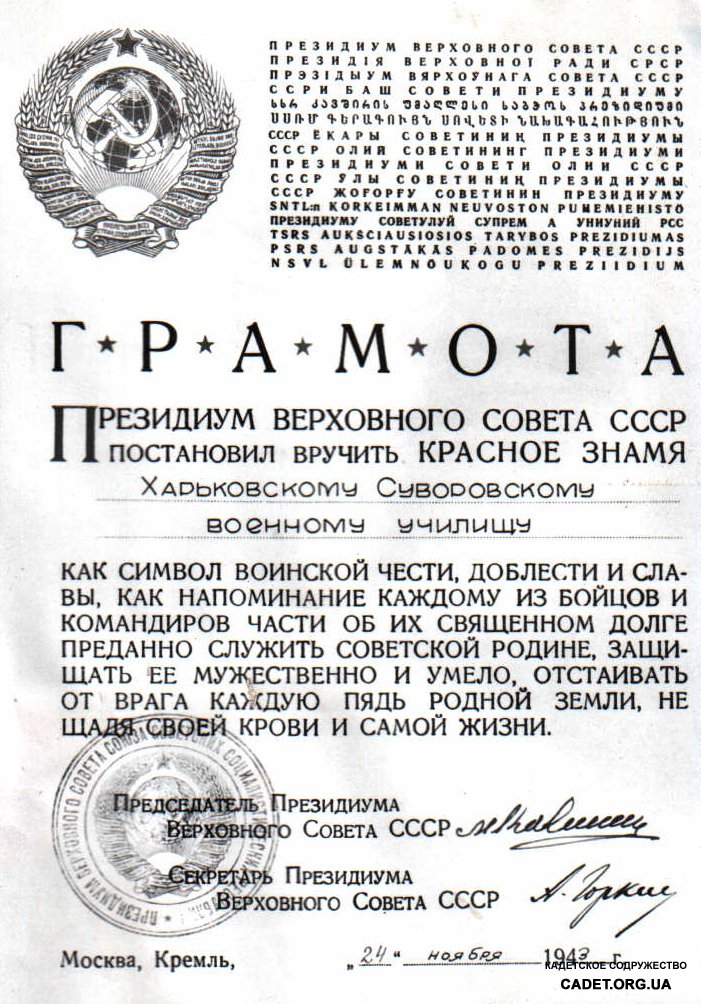 На Сбор будут вынесены Знамена Киевского суворовского военного училища и Киевского военного училища.